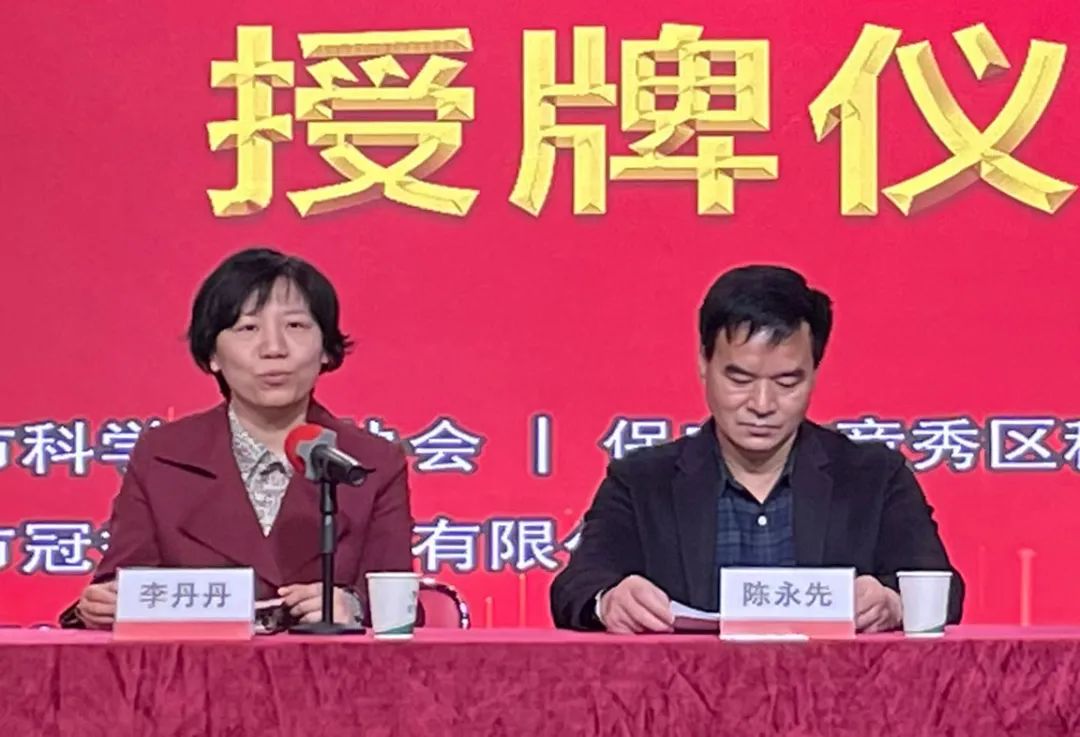 保定市科協(xié)副主席陳永先、市科協(xié)普及部一級(jí)主任科員王芳,競(jìng)秀區(qū)區(qū)委常委、統(tǒng)戰(zhàn)部長(zhǎng)李丹丹,競(jìng)秀區(qū)科協(xié)主席蘇洪瑞,保定市冠香居食品有限公司董事長(zhǎng)盧長(zhǎng)永出席授牌儀式。